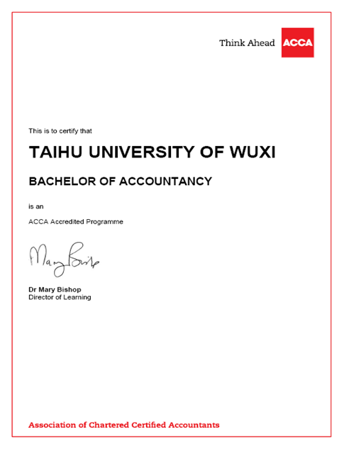无锡太湖学院ACCA班已有十年办学经验。为进一步建设和发展学科,优化课程设置和教学方式,培养国际化财会人才,从2017年起我校与英国安格利亚鲁斯金大学合作开办ACCA国际班。借鉴 ACCA 全面、完善和国际化的课程体系,依托无锡太湖学院与英国安格利亚鲁斯金大学高素质的师资队伍,采用 ACCA 英文原版教材,实施英语或双语教学。本专业的目标是培养拥有国际化视野以及思维方式,具备娴熟的专业财务英语能力、全面扎实的财务专业知识和实务操作能力,能在大型跨国企业、会计师事务所或证券金融机构从事财务和管理相关工作的国际化专业财会人才。国际ACCA 班采用专门制定的培养方案和教学计划,全面系统地培养学生的国际化会计职业能力,学生完成培养方案设定学分后,可取得会计学专业本科毕业证书和学士学位,将自动获得 ACCA 核心课程F1-F9的豁免,