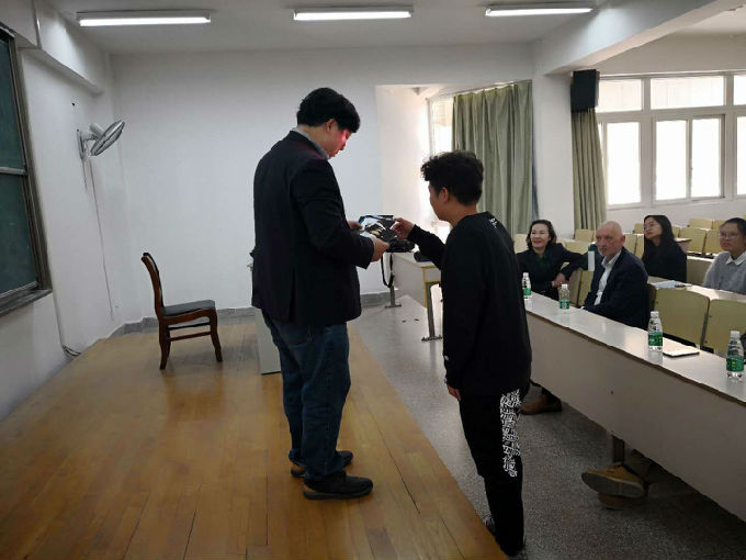 随后,林新法博士向同学们详细介绍了两校联合举办的ACCA创新特色班的亮点,此项目已获得特许公认会计师公会(ACCA)英国总部许可,参加项目的同学完成培养计划中规定的全部学分后可获得无锡太湖学院授予的本科毕业证书和会计学学士学位,获得ACCA 9门课程考试的豁免,更有机会赴安格利亚鲁斯金大学深造。在接下来的互动环节,林博士解答了同学们关心的留学英国的种种疑问,并向同学们赠送了具有英国特色的小礼物。