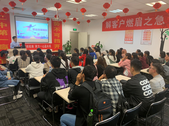 在参观完工作区后,两位负责人分别围绕职业发展规划的主题,给同学们开了一场讲座。其中惠经理以自身的工作履历向大家说明,给自己定下一个清晰的职业发展目标的重要性,他和同学们分享了自己所制定的六年计划以及他在35岁之前达到的经理级别的目标。对此,他提出了“SMART”,即“Specific——具体的”、“Measurable——可衡量的”、“Attainable——可达成的”、“Relevant——与其他目标有相关性”、“Time-bound——有特定期限”,所制定的目标如果符合以上五点要求,再加以自身努力,就会更有机会实现。