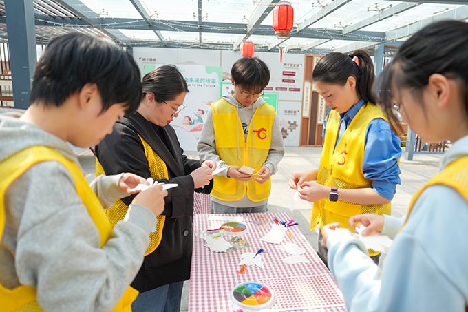 本次活动共有110名山语银城幼儿园师生参加,活动中,志愿者们与社区党员志愿者、居民代表们协同配合,共同承担起秩序维护、流程引导、文化讲解等志愿服务工作。在红色长廊的各个互动区域,志愿者们身着黄色马甲,以耐心细致的服务陪伴孩子们探索阅读的乐趣。非遗文化拼图区前,志愿者协助幼儿拼合节气图案,用通俗易懂的语言讲述传统文化;描“廉”拓书体验中,他们手把手教孩子们描绘汉字,传递“廉”文化的深刻内涵;书签DIY环节里,志愿者鼓励孩子发挥创意,将童真想象融入小小的手工书签。活动结束后,志愿者们参观党建长廊,通过长廊图文展陈学习理论知识,感悟红色精神。
