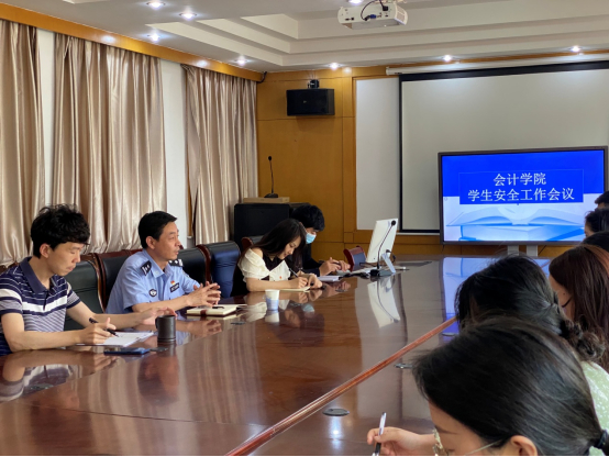 6月2日上午,会计学院召开学生安全工作会议,院党总支副书记蒋昊霖,滨湖分局内保大队驻校民警钟鑫彪以及全体辅导员出席会议。