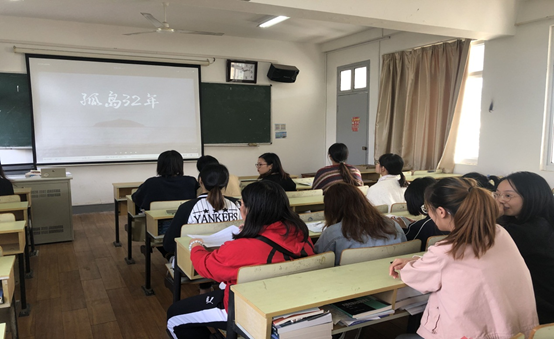 最后,我们集中观看了典型先进事迹纪录片《孤岛32年》。《孤岛32年》讲述了王继才、王仕花夫妇从1986年7月15日起接受了守岛任务,从此夫妻二人以海岛为家,默默坚守三十二年,把青春年华全部献给了祖国海防事业的感人故事。一朝上岛,一生卫国。我们敬佩王继才同志,几十年如一日,一直坚守在条件艰苦的小孤岛上,为了心中的那份信念,那份崇高理想,默默无闻的忠诚于革命事业,奉献了自己的全部精力。平凡的他在平凡的岗位上,守护家国谱写不平凡的人生华章。