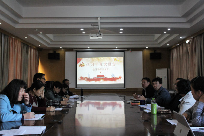 11月9日下午,会计学院教工党支部召开贯彻十九大报告专题学习会。这是我院继党总支组织观看十九大开幕式和学习习近平总书记十九大报告内容后,学院举行的又一次重要学习活动。学院全体教职员工参加了专题学习。会议由副书记蒋昊霖主持。