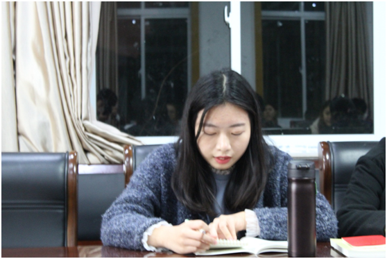 其次,黄老师提出学院党总支会进一步完善学生党员的考核、奖惩制度,对学生党员进行定期考核,并根据考核结果进行相应奖惩。督促各位同学加强理论学习、提高实践经验,向优秀党员同志学习,培养高尚的人格,在中国共产党的引领下,努力践行党的十九大会议精神,为社会贡献一份自己的力量,自信自强,顽强拼搏。