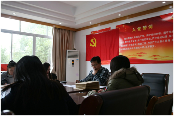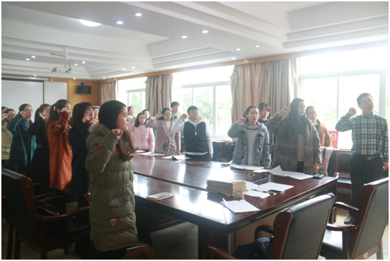 随后,由在场的十名预备党员进行无记名投票表决,并以十票同意,0票反对,0票弃权的结果,同意这18名同学转为预备党员。由黄贵平老师宣布党支部决意,同意这18位入党积极分子正式成为预备党员。在学院党支部思想委员黄老师的带领下,各位入党积极分子进行了入党宣誓,伴随着激昂的宣誓词,各位同学正式加入中国共产党。