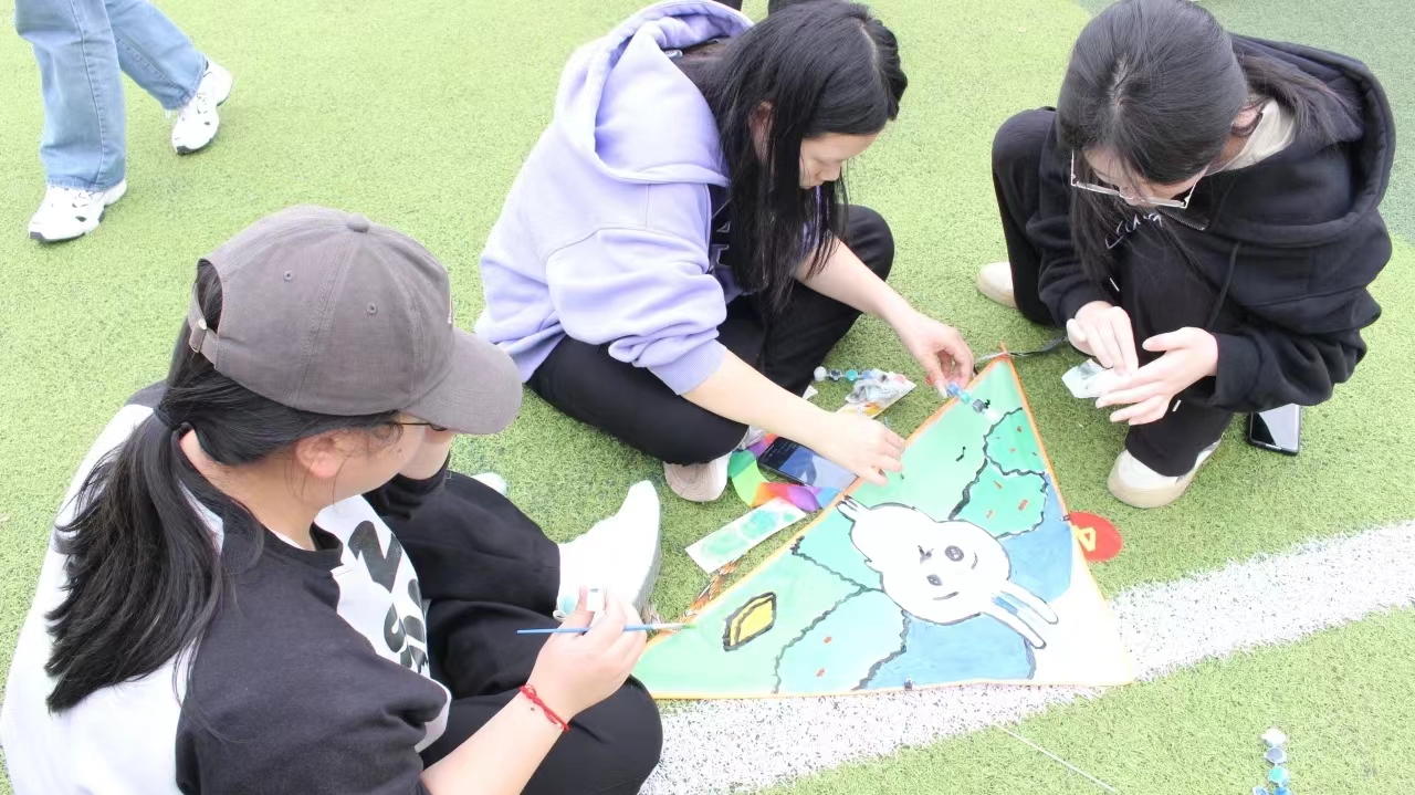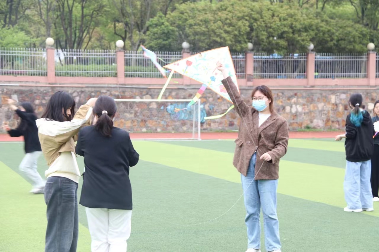 从等待合适的风力和风向,到给风筝拉线,再到细心调整风筝的角度和高度,直至一个个手绘风筝终于稳稳地飞上天空......在这鸢飞蝶舞的美好春光里,同学们将风筝高高举过头顶,自由奔跑,尽情享受着春日的阳光和放飞梦想的喜悦。