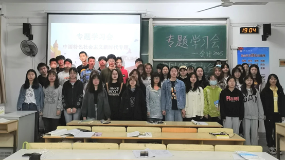 4月25日晚上8:00,会计2005团支部全体成员于8-211举办了以“中国特色社会主义新时代”为主题的专题学习会。