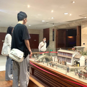 首先同学们在西区一楼参观了古代古镇庙会的场景,生动而又趣味的泥人以及富有特色的江南建筑,让同学们仿佛身临其境。二泉茶馆边的一处闲聊、街道上买菜时的问候、巧手的街边艺人等等都让人感受到那时的吴风锡韵。同时每位同学也参观了中国非物质文化遗产——惠山泥人和宜兴紫砂壶,感受其独特的艺术魅力,纷纷对此发出赞叹,一叹泥人及紫砂壶的精美,二叹手工艺人的独具匠心,更叹优秀民间传统文化。