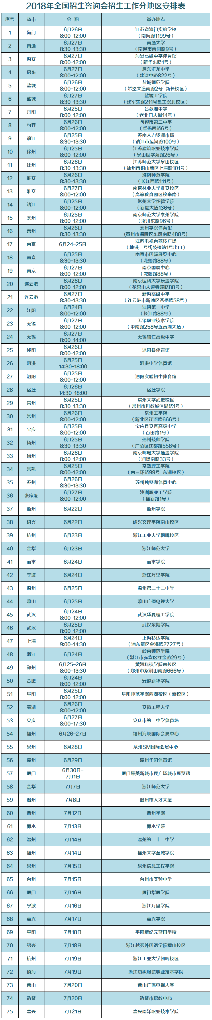 2018年全国招生咨询会招生工作分地区安排