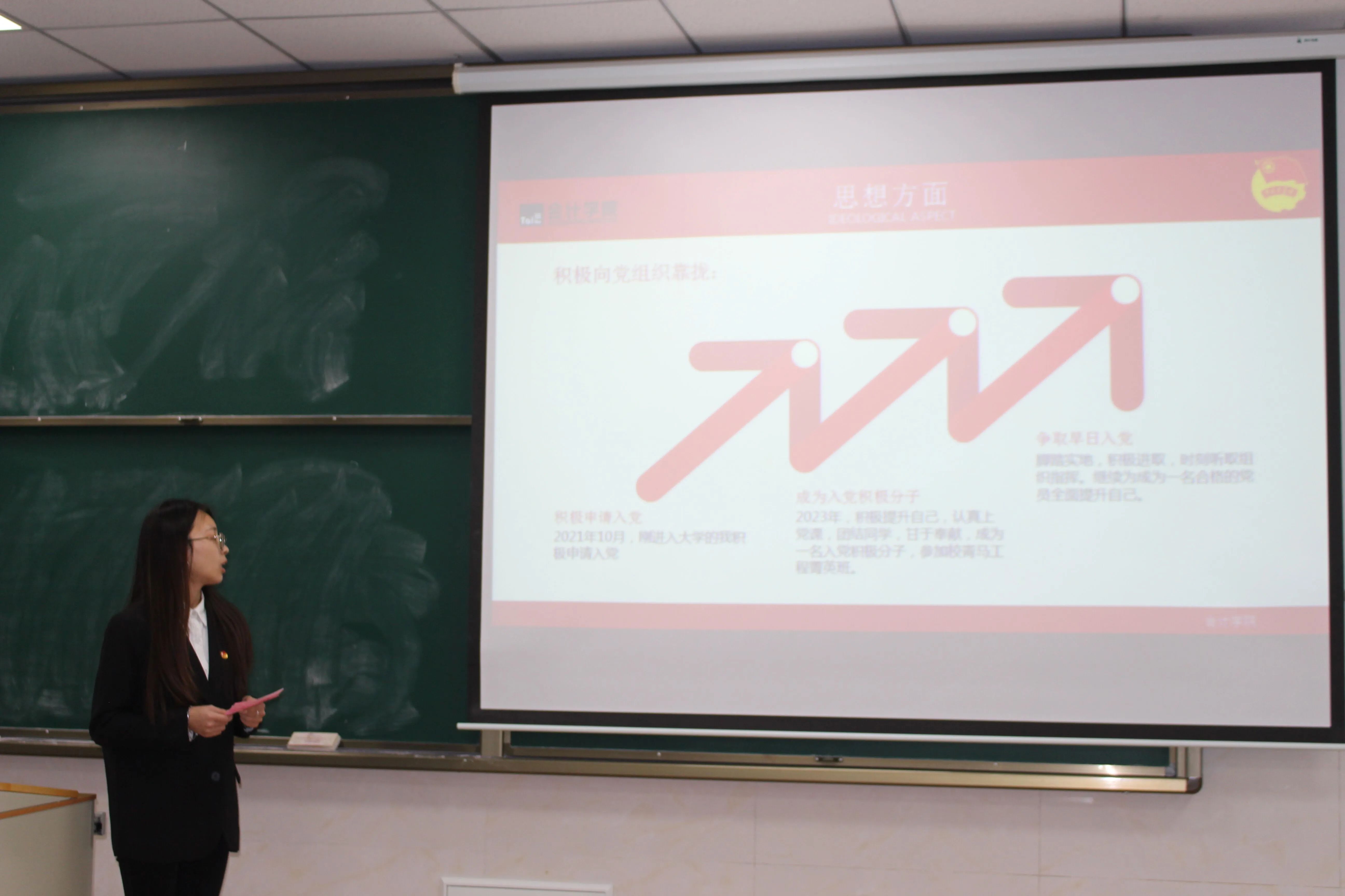 答辩会分为PPT展示和评委提问两个环节。答辩同学围绕自身优势、政治素养、活动奖励、志愿服务等方面详述,通过演讲展现了勤学实干,锐意进取的优良品质,开拓创新、热爱服务的时代精神,展现了会计学院团员的良好风貌。