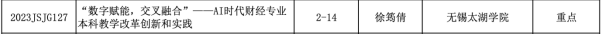 根据江苏省高等教育学会评估委员会发布《关于做好2023年江苏省高等教育教改研究课题立项建设申报工作的通知》(苏高教会〔2023〕23号),依据“择优推荐、确保质量、统筹兼顾、科学布局”原则,在各高校认真组织、择优推荐的基础上,经过网评和会评的两轮专家评审、结果公示和省教育厅相关处室审定,评选出2023年省高等教育教改研究立项课题800项(重中之重课题51项,重点课题226项,一般课题523项)。会计学院徐筠倩副教授申报的课题《“数字赋能,交叉融合”--- AI时代财经专业本科教学改革创新和实践》荣获重点项目立项,这是会计学院首次获得省级教改课题重点项目,标志着我院教学改革进入新的发展历程。