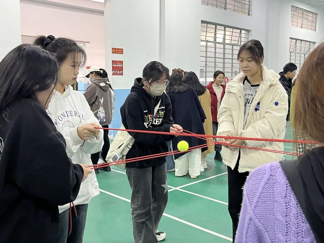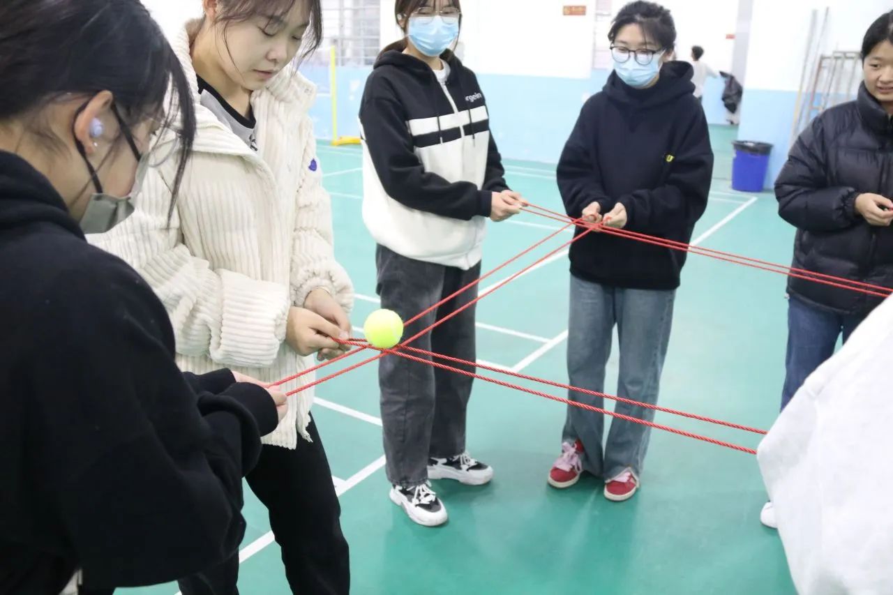 在工作人员的指导下,每组队员快速掌握了相关技巧,全神贯注于那颗小小的球上,众人协心,合力运输,他们的默契配合赢来了观众们的阵阵掌声。