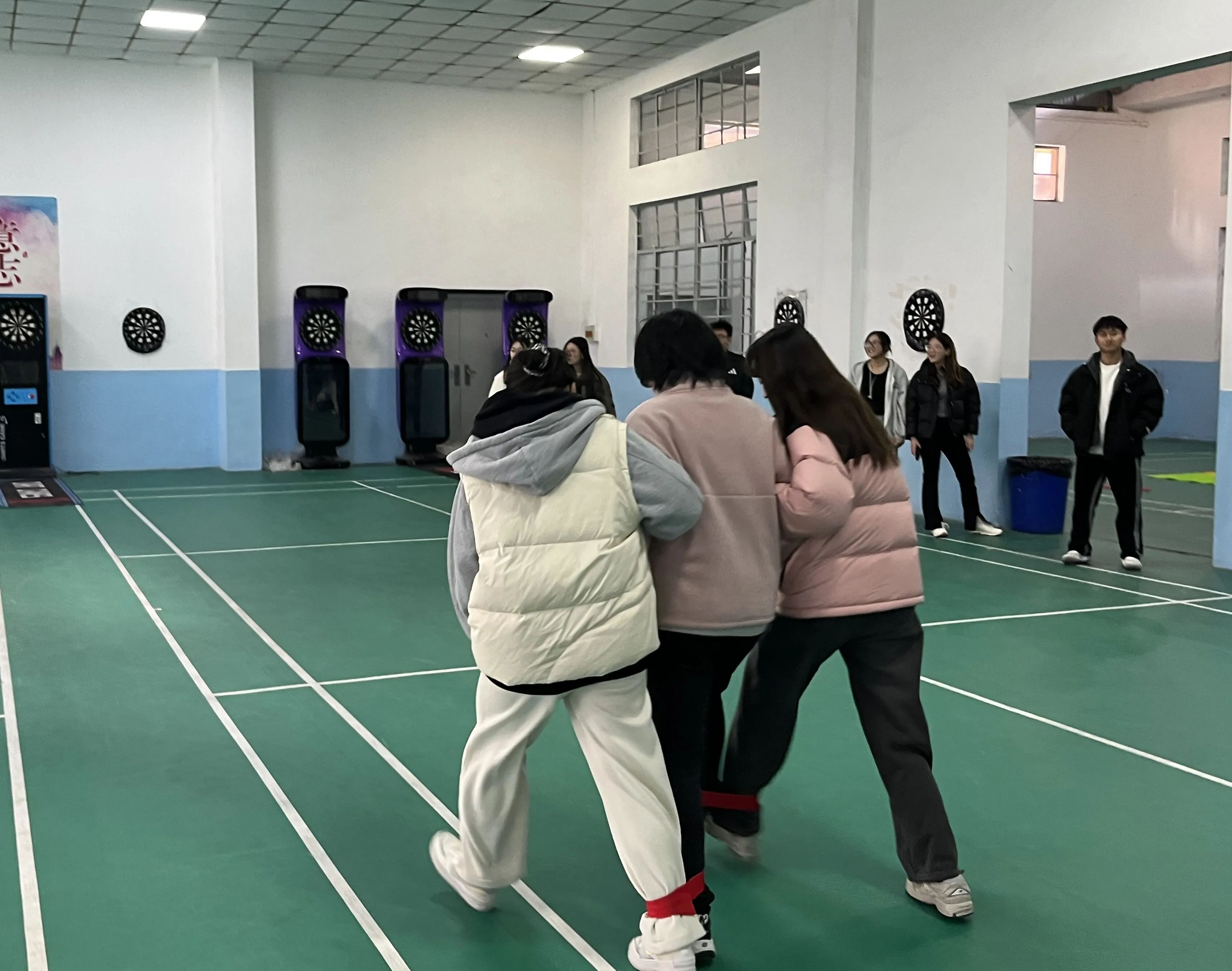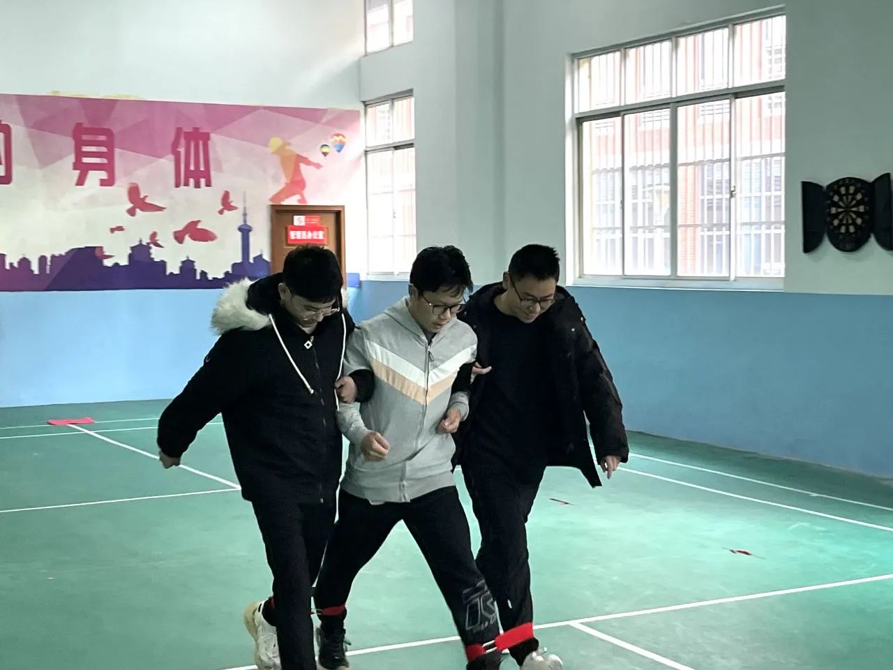 本次活动包括:三人四足,合力运球,指压板跳绳三个项目。