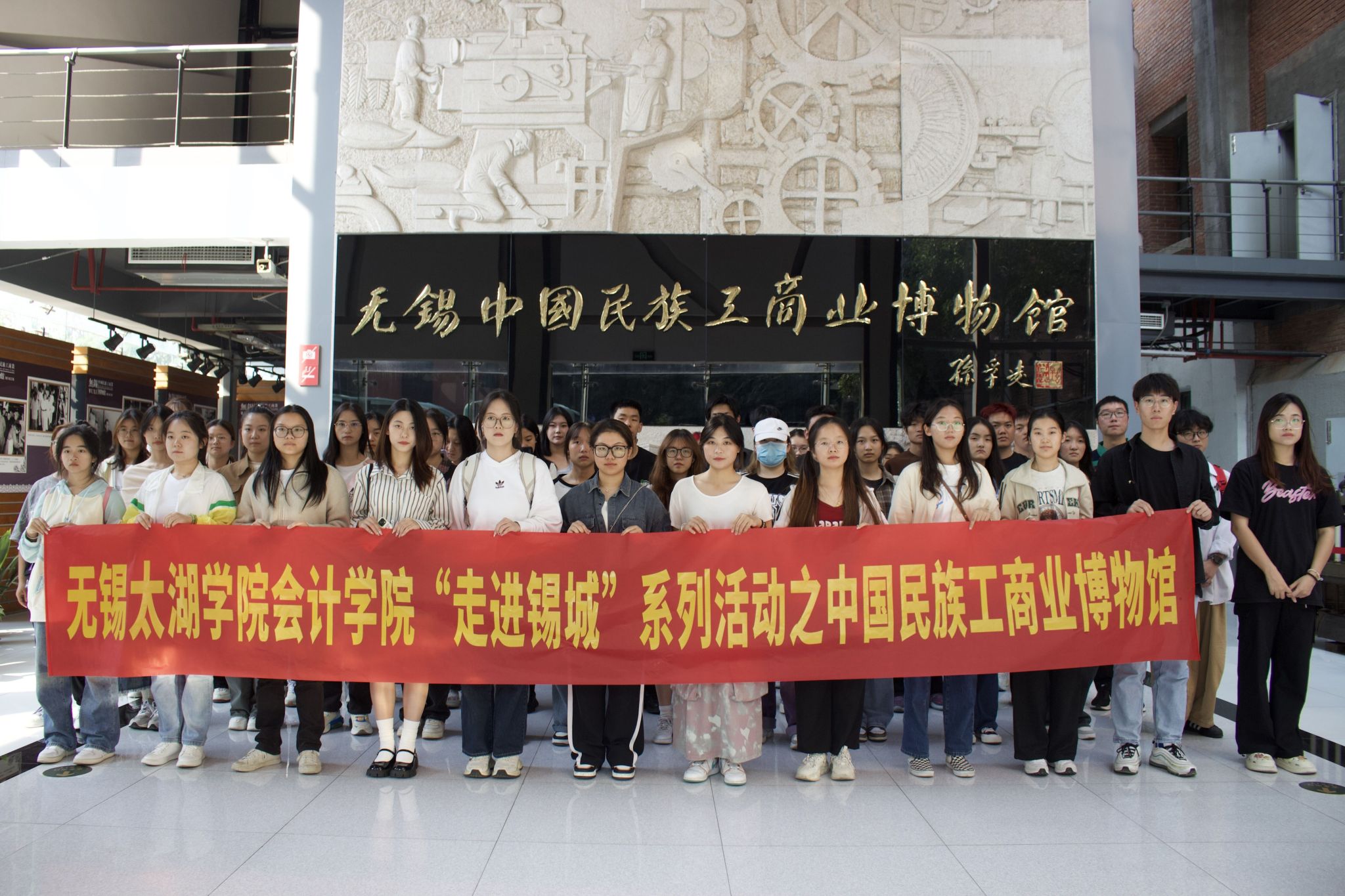 活动开始前,全体同学在会计学院集合,清点完人数并强调活动要求后,乘坐大巴车集体前往无锡民族工商业博物馆。