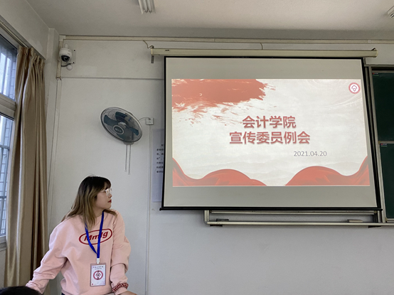 班级宣传工作一直是建设与传播班级文化的重要途径之一。为进一步加强新闻宣传工作的规范管理,提升新闻稿件的质量和水平,会计学院团总支于4月20日下午6点在8号楼406教室举行本学期宣传委员工作例会。